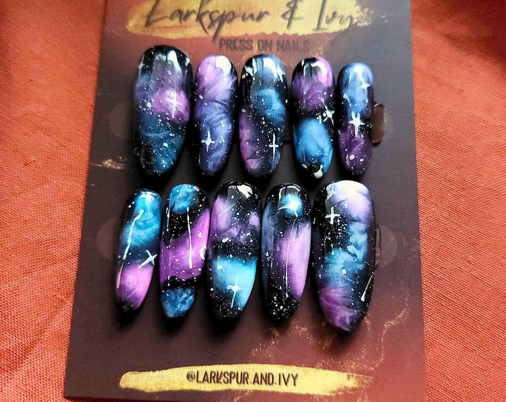 Long Natural Stiletto UV Glow-in-the-Dark Jellyfish Apres Gel-X Press On Nails Size Medium